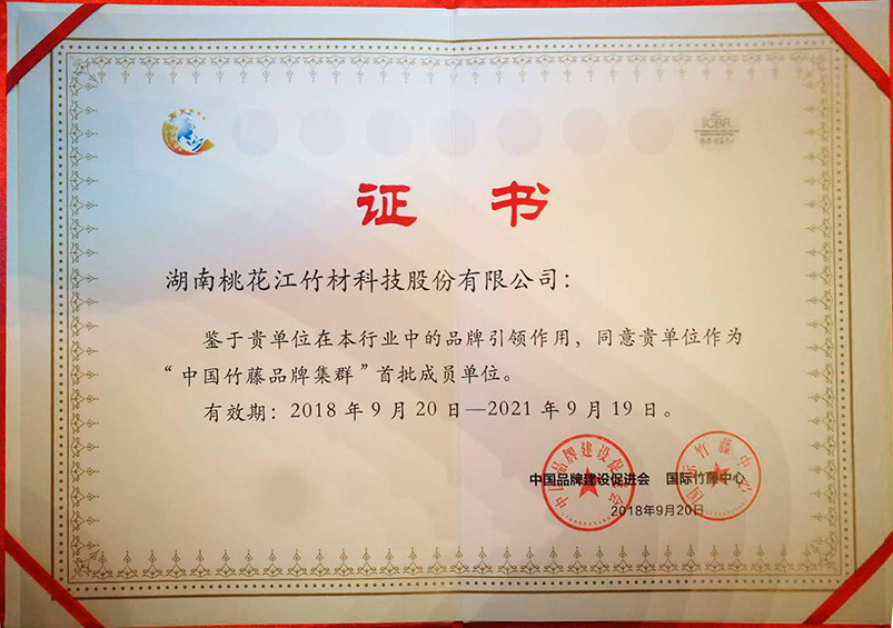9月20日,"首屆中國集群品牌論壇"在京成功舉行。本次論壇發(fā)布的37個中國竹藤品牌中桃花江竹材科技位列其中,桃花江品牌成功入選"中國竹藤品牌集群"。